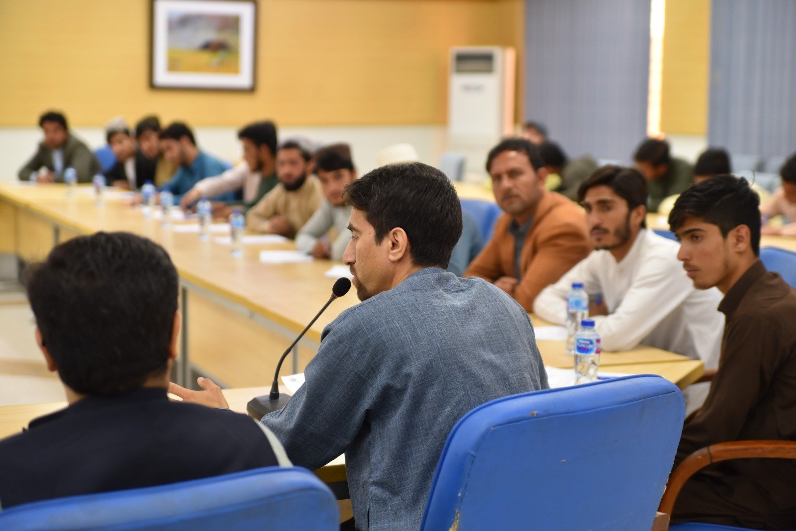 Mr. Hafeez Ullah, the Communication Assistant at ICRMS, moderated the session. He provided a comprehensive overview of ICRMS’s unwavering commitment to supporting Afghan refugees in Balochistan. He introduced the Crash Course, outlining its fundamental objectives, and shared compelling data from prior programs, showcasing their positive outcomes, following interactive sessions with Afghan refugee students. Following this, Mr. Sami-ul-Haq, an Afghan refugee student, was invited to the stage to recount his inspiring success story. His dedication and hard work culminated in an impressive 56% score in the National Aptitude Test (NAT), a test required for admission at universities all over Pakistan.