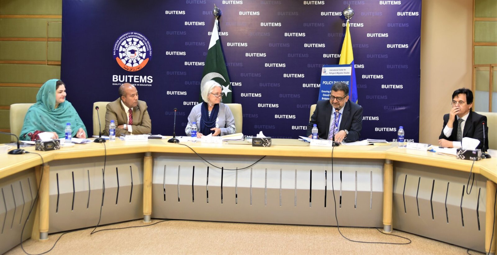 On September 25th, 2023, the International Center for Refugees and Migration Studies hosted its pivotal Policy Dialogue titled “Ensuring Access and Quality Education for Refugees: Bridging the Gap between Policy and Practice.” Esteemed dignitaries, including Vice Chancellor Dr. Khalid Hafeez from BUITEMS University, VC Loralai University Dr. Ehsaullah, Pro-VC of Sardar Bahadur Khan University, and representatives from various universities in Balochistan, alongside key players and UNHCR representatives like Ms. Tammi Sharpe, Tesfaye Bekele Weldeyesus, Ms. Viviane Tableros Plata, Mr. Arkadiy Leybovskiy, Mr. Jalal Khan Kakar, Mr. Sami Hashmi, and Ms. Noreen Sahar, convened for a crucial discussion. This event was also graced by significant stakeholders from governmental bodies such as HEC, BEF, PITE, CAR, and representatives from civil society. The dialogue centered on the pressing matter of ensuring both quality and accessibility within the higher education sector of Balochistan, Pakistan.